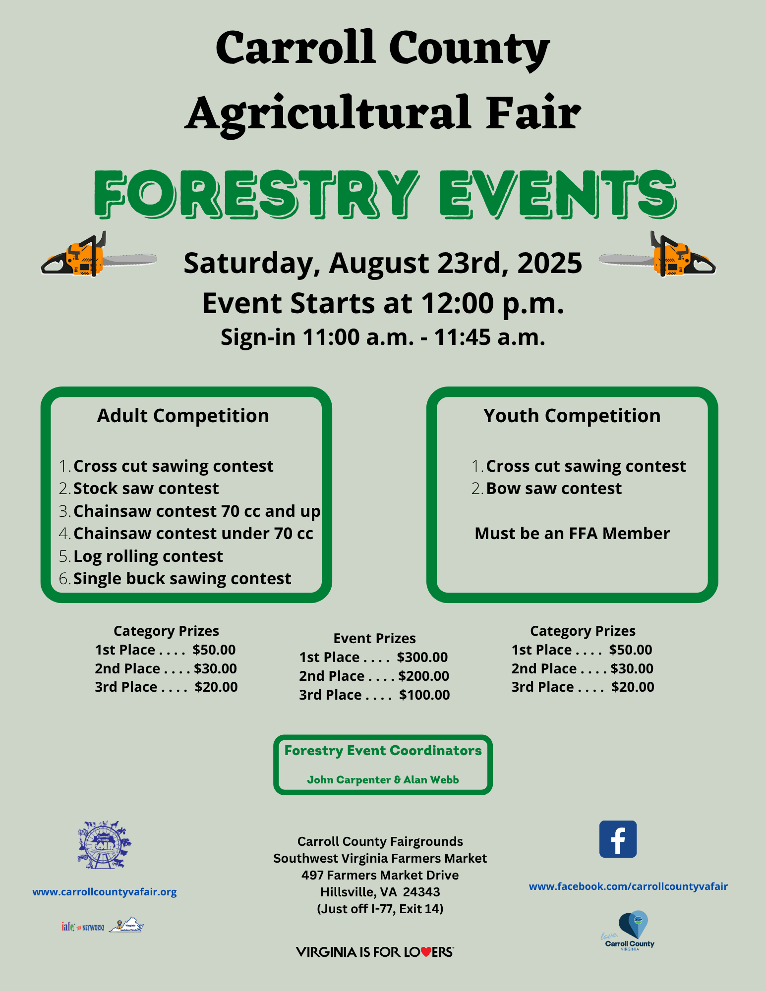 2025 Forestry Contest Flyer Forestry Events Forestry Event Coordinators John Carpenter, Makenzie Carter and Alan Webb